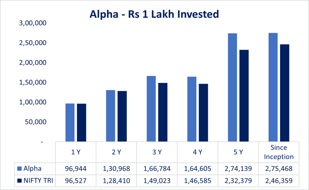 | Since Jan 2019 | ALPHA | NIFTY50TRI |