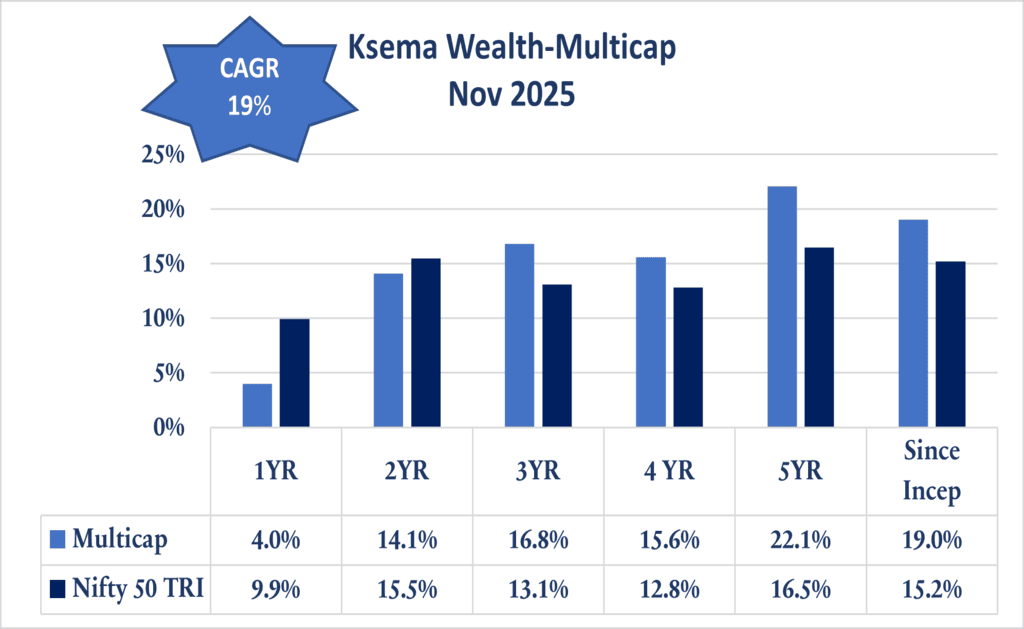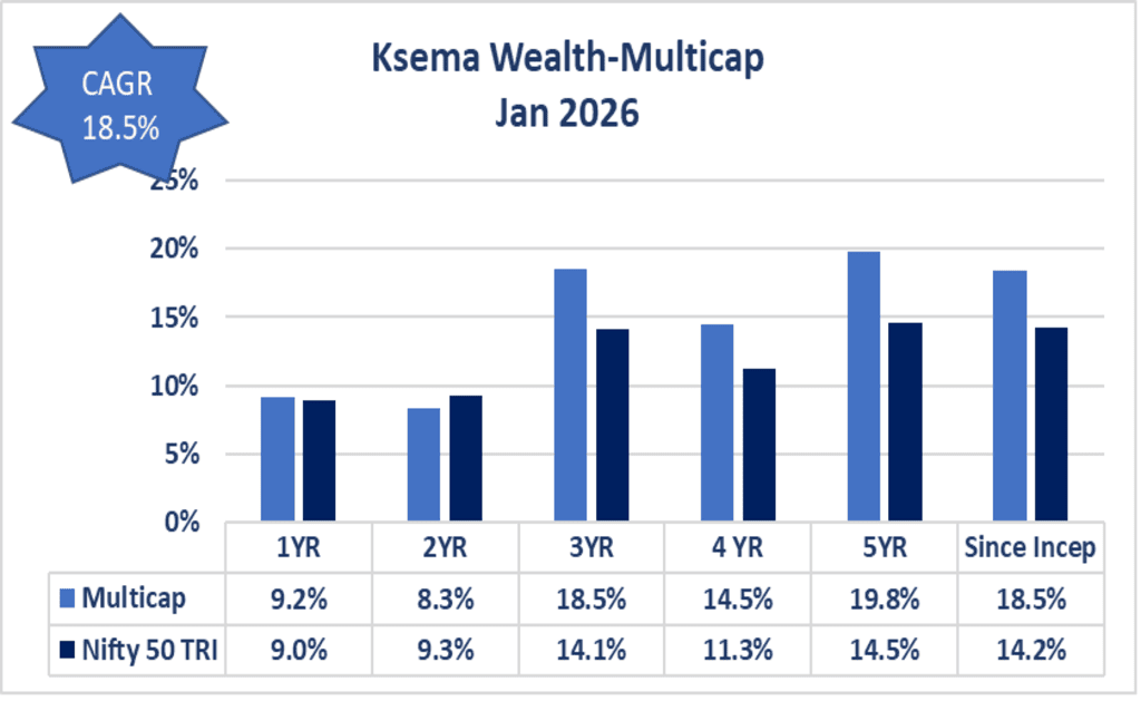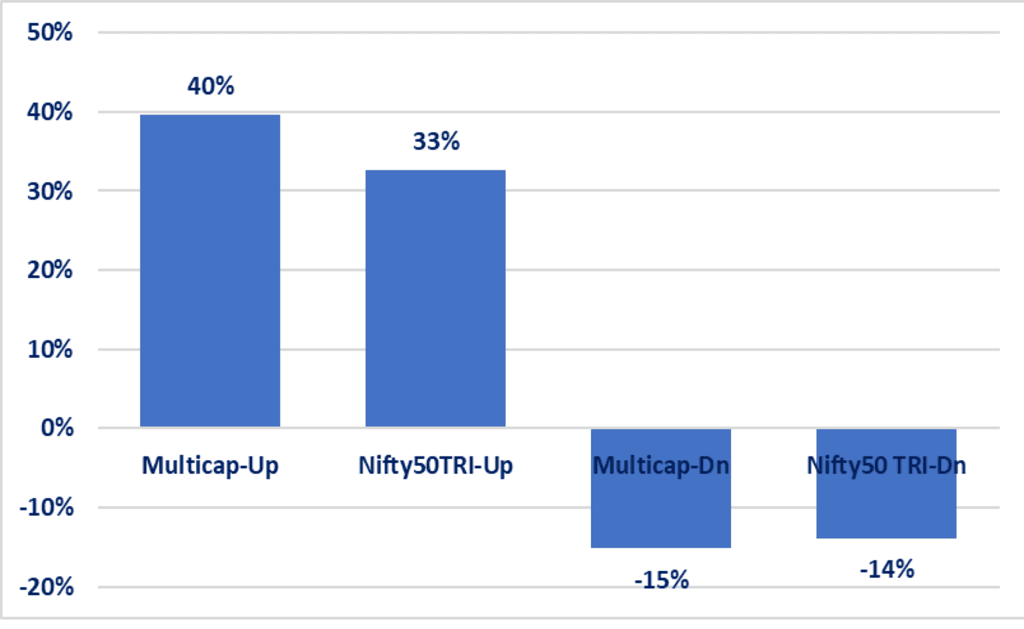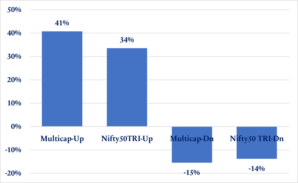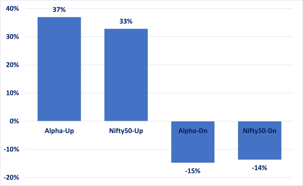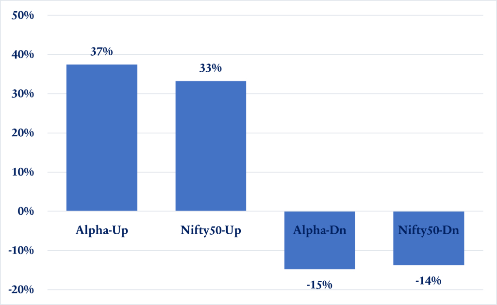 Both Ksema–Alpha & Ksema-Multicap has outperformed in “up trending” & “down trending” market; Both Capture Up: Dn ratio is above 1.